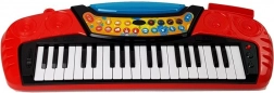 Klávesy nabízejí 37 kláves, demo písně, regulaci hlasitosti a tempa, různé taneční rytmy a 9 zvuků nástrojů. Připojený mikrofon s držákem umožní současně hrát i zpívat. Postranní přihrádka na externí přehrávač usnadní připojení hudby a rozběhne domácí karaoke.