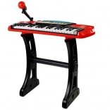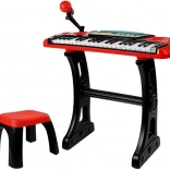 Tento červený dětský keyboard je skvělou volbou pro malé muzikanty. Podporuje sluch, rytmus i kreativitu a motivuje děti k vlastním melodiím. Součástí je stabilní stojan a pohodlná stolička, takže dítě může ihned začít hrát.