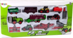 - 3× traktor, 1× kombajn, 1× vagon, 1× přívěs, 1× cisterna, 1× lis, 1× pluh a další doplňky (celkem 12 ks)