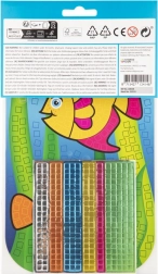 Mozaikový kreativní set je ideální pro rozvoj jemné motoriky, soustředění a vnímání barev. Stačí lepit metalické pěnové čtverečky na vyznačená pole a během chvilky vznikne působivý obrázek rybiček ve formátu A5.