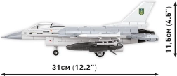 F-16 Fighting Falcon patří mezi nejznámější víceúčelové stíhací letouny světa. Tato stavebnice COBI v měřítku 1:48 věrně zachycuje verzi AM v ukrajinském zbarvení. Všechny díly jsou opatřeny kvalitními tampotisky (bez samolepek). Součástí balení je průhledný stojánek s informačním štítkem a detailně potištěná figurka ukrajinského pilota s helmou a kyslíkovou maskou.