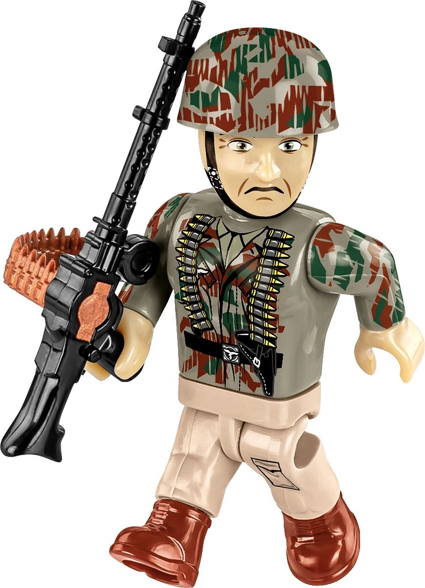Set doplňují tři figurky – artilerista a dva výsadkáři v tropické kamufláži, které odkazují na boje na Apeninském poloostrově. Stavebnice je plně kompatibilní s dalšími značkami, obsahuje čitelný obrázkový návod a je vyrobena v EU s důrazem na bezpečnost a dlouhou životnost.