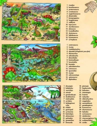 - Hledací úkoly, seznam dinosaurů na konci knihy