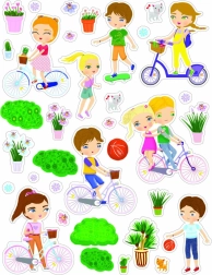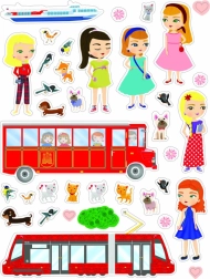 - Desítky samolepek s postavičkami, dopravou a městskými motivy