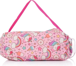 Kočárek, postýlka a jídelní židlička pro panenky v kouzelném motivu UNICORN. Nechybí taška na pleny a přenosná taška pro všechny doplňky.