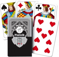 Klasické dvouhlavé karty typu pikety s francouzskými hodnotami 7, 8, 9, 10, J, Q, K, A. Ideální pro oblíbené hry jako Mariáš nebo Prší. Balíček obsahuje 32 hracích karet s přehledným designem a pohodlným rozměrem pro domácí i cestovní hraní.