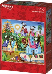 Užijte si relax s krásně ilustrovaným čtvercovým puzzle s motivem sletu čápů. Obsahuje 1000 dílků a po složení má rozměr cca 63,5 × 63,5 cm – ideální pro milovníky přírody a náročnější skládačky.