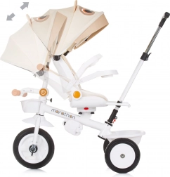 Tříkolka je vybavena 5bodovými bezpečnostními pásy s měkkým polstrováním, které zajišťují bezpečnou jízdu.