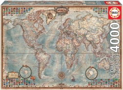 Vychutnejte si dlouhé hodiny promyšlené zábavy s puzzle Educa zobrazujícím politickou mapu světa. Tato velkoformátová skládačka s 4000 dílky nabízí bohaté detaily, jasné barvy a přehledné vyznačení států, hlavních měst a hranic. Po složení vznikne působivý obraz o rozměrech přibližně 136 × 96 cm, který se skvěle hodí k zarámování a vystavení.