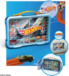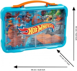 Stylový kufřík/garáž pro sbírku autíček v měřítku 1:64 s průhlednými dvířky, kapacitou až 54 vozidel a podsvětleným logem HOT WHEELS. Nabízí praktické madlo pro přenášení i možnost montáže na zeď, takže své miláčky budete mít vždy bezpečně uložené a krásně vystavené.