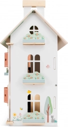 Tento krásný dřevěný domeček pro panenky zve děti do útulného světa plného fantazie. Místnosti jsou ozdobené tapetami a roztomilými ilustracemi, které podporují kreativní hru a rozvoj sociálních dovedností. Otevírací okenice přidávají na realističnosti a odnímatelná střecha odhaluje velkorysé podkroví pro další dobrodružství.