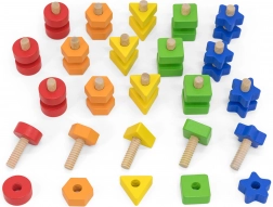 Hra s barevnými šrouby a maticemi rozvíjí jemnou motoriku a koordinaci ruky a oka. Zároveň umožňuje dětem objevovat nové tvary a barvy, podporuje zručnost a kreativitu.