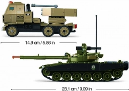 Délka tanku je 23,1 cm a vozidla 14,9 cm. Sada je intuitivně navržená a jednoduché skládání podporuje dětskou samostatnost. Rozměry balení jsou 47,5x33x6,7 cm, což ji činí příležitostným dárkem, který zaujme zajímavým designem.