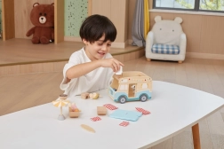 Kempingový vůz je vyroben z kvalitního dřeva, což zaručuje dlouhou životnost a bezpečnost pro děti.