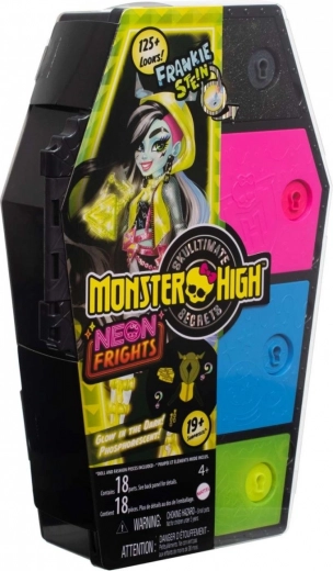 Otevři elektrizující skříňku Frankie Stein a vstup do světa Monster High v neonovém stylu. Čekají tě čtyři klíče s efektem Color Reveal, tajné přihrádky plné doplňků a akcesorický mix, který svítí ve tmě. Ideální pro kreativní hraní, sbírání i stylové vystavení.