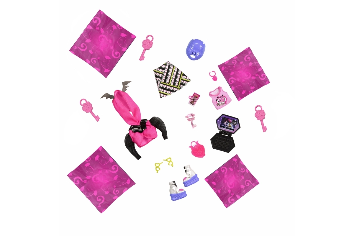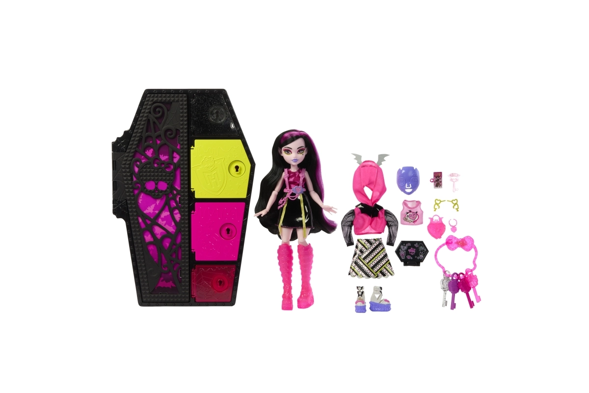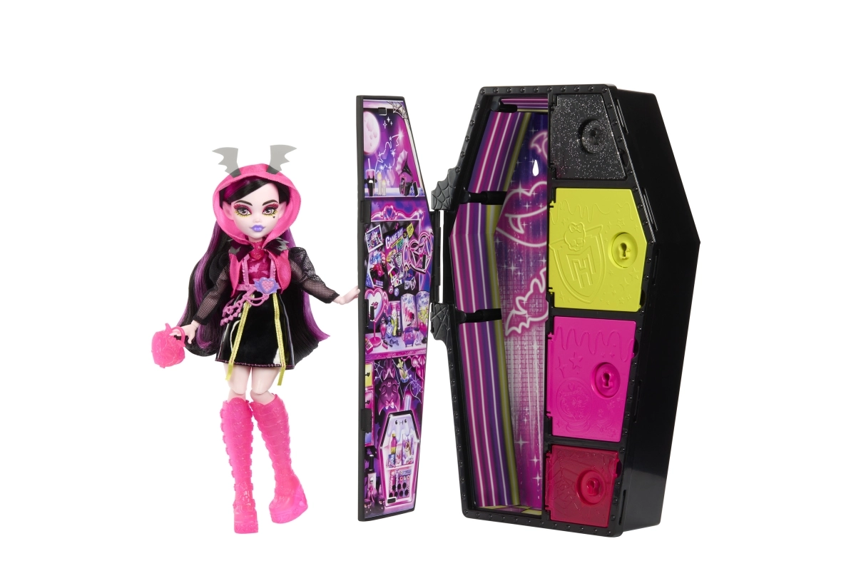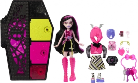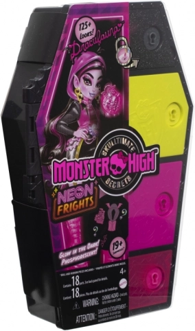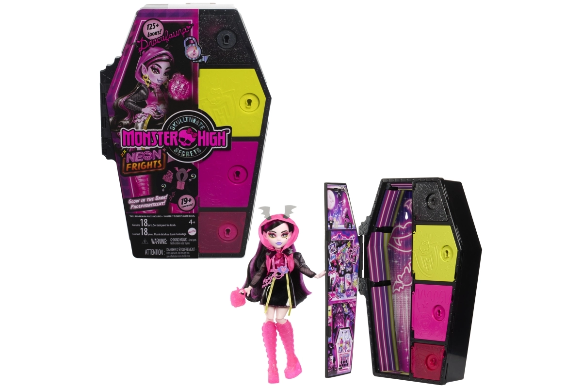 Edice Neon vrací oblíbené Skulltimate Secrets v ještě zářivějším provedení. Uvnitř stylové skříňky ve tvaru rakve čeká panenka s bohatou výbavou, efekty měnícími barvu a doplňky, které ve tmě září. Hraní tak získává nový rozměr atmosféry a fantazie.