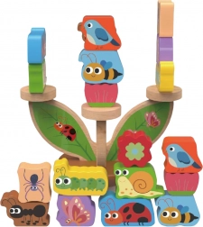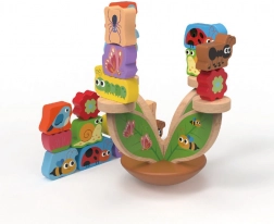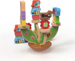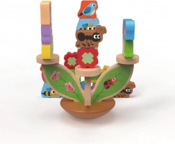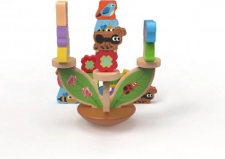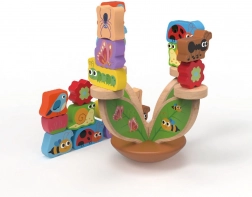 Pokládání různě velkých dílků na balanční základnu učí děti přesnosti, soustředění a koordinaci pohybů – zábavnou formou a bez obrazovek.