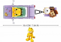 Postavte si fialové auto s detailem „Garfield“ na boku a připojte vozík s tematickými doplňky – ideální pro hraní i vystavení.
