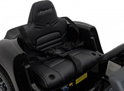 Sedadlo z eko kůže s pásy, zvuky ve volantu a multimediální panel s MP3/USB/AUX/BT a FM rádiem pro maximální zábavu.