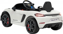 Stylové dětské elektrické autíčko inspirované modelem Porsche 718 Spyder RS zaujme realistickým vzhledem, gumovými koly EVA, koženým sedadlem a bohatou multimediální výbavou včetně Bluetooth, USB, MP3 a FM rádia. Dva motory 2×45 W, baterie 12 V 7 Ah, pomalý rozjezd, LED světla a dálkové ovládání 2,4 GHz se zabezpečovacím tlačítkem Stop zajistí bezpečnou a zábavnou jízdu.
