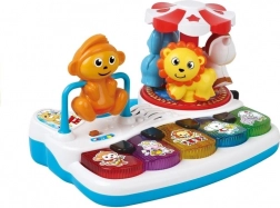 Roztomilé dětské piano se zvířátky a otočným kolotočem je ideální jako dárek pro nejmenší. Nabízí světelné a zvukové efekty, tlačítka s hlasy zvířat i hudebními nástroji. Veselá otáčející se opička a hravý kolotoč spustí melodie a rozsvítí klávesy. Vhodné pro děti od 12 měsíců.