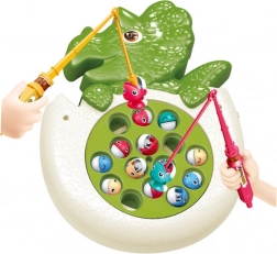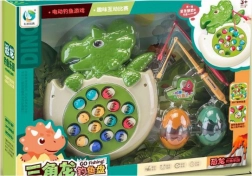 Zábavná dětská hra v tvaru dinosaura, ve které se rybky v „jezírku“ otáčejí a vystupují na hladinu. Děti je chytají do síťky nebo na prut a trénují postřeh, jemnou motoriku a koordinaci. Hra nabízí světelné efekty a zvuky pro ještě větší zábavu.