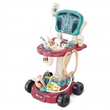 Obsah balení: panel/vozík s EKG efekty, brýle, stetoskop, teploměr, otoskop, tlakoměr, kladívko, stříkačka, zubní zrcátko se světlem, skalpel (hračka), imitace dezinfekčního krému, imitace očních kapek, imitace dózy s léky, jmenovka doktora, karta pacienta.