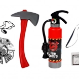 Set obsahuje mnoho realistických komponent, které usnadní dětem proniknout do světa hasičů. Kurtka s reflexními pruhy poskytuje autentický vzhled, zatímco kask s odznakem dodává hře na opravdovosti. Gašnice funguje jako vodní rozprašovač, aby si děti mohly naplno vychutnat hru na hašení požárů. Všechny části jsou uloženy v průhledném batohu, který usnadňuje přenositelnost.