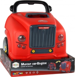 Náš červený dílenský náklaďák je více než pouhá hračka. S interaktivním designem umožňuje dětem zkoumat mechaniku a podporuje jejich logické uvažování. Otevíratelná kapota a šroubovatelná kola poskytují dítěti zábavnou simulaci konstrukce a opravy vozidla.