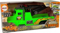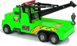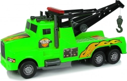 Velké zelené odtahové auto pro děti v měřítku 1:10 přináší spoustu zábavy a realistických funkcí. Nabízí funkční naviják s hákem, setrvačníkový pohon pro rychlý rozjezd a odolnou plastovou konstrukci se šesti koly pro stabilní jízdu.