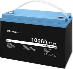 Spolehlivý akumulátor LiFePO4 QOLTEC s kapacitou 100 Ah a napětím 12.8 V nabízí dlouhou životnost, stabilní výkon a bezpečný provoz díky integrovanému BMS. Ideální pro fotovoltaiku, záložní zdroje, karavany i další mobilní a stacionární aplikace. Vyniká 100% hloubkou vybití, minimálním samovybíjením a nízkou hmotností oproti olověným bateriím.