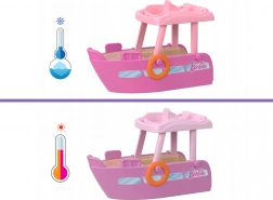 Tento barevný herní set přináší dětem od 4 let do rukou mini dobrodružství na vodě. Loď v růžovo‑fialových tónech má horní palubu se sezením, kabinku a lze ji rozložit do herní podoby s jasně žlutou klouzačkou a tyrkysovým srdcovým bazénkem. Součástí je mini panenka v plavkách, připravená vyrazit na prázdninovou plavbu.