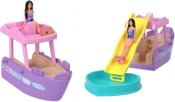 - Loď, odnímatelná klouzačka, srdcový bazének, mini panenka v plavkách