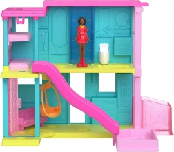 Tento roztomilý mini domek nabízí vše pro velká dobrodružství v malém měřítku. Uvnitř najdete kuchyň, obývací pokoj, koupelnu a ložnici s patrovou postelí, venku pak bazének se skluzavkou a houpací kokon. Nechybí ani funkční výtah pro plynulý pohyb mezi patry.