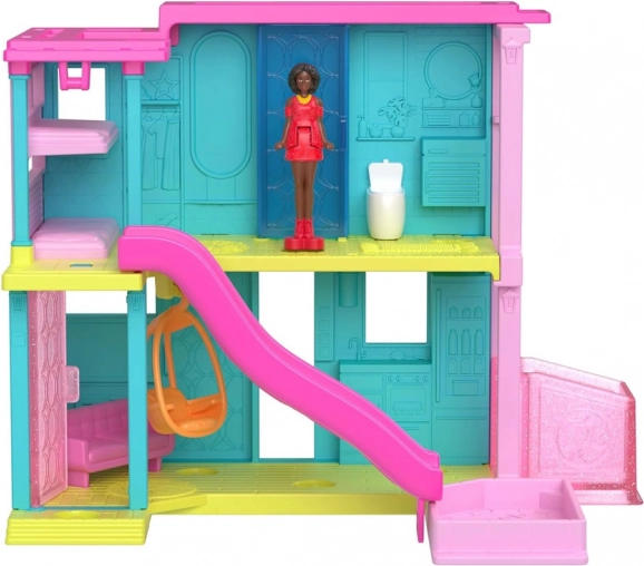 Děti si užijí plynulé přesuny mini panenky výtahem a následnou jízdu po skluzavce přímo do bazénku – perfektní kombinace funkcí pro nekonečnou zábavu.