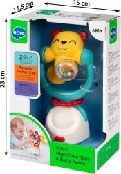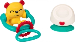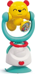 Roztomilý medvídek upoutá pozornost jasnými barvami a příjemnými zvuky. Díky integrované grzechotce dítě objevuje vztah mezi pohybem a zvukem, zatímco otáčivý vršek podněcuje zvídavost a koordinaci rukou a očí. Silná přísavka udrží hračku stabilně na hladkém povrchu – ideální na jídelní židličku nebo stůl.