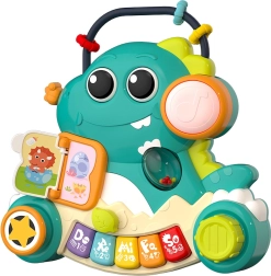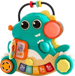 Můj Dino je ideální první hudební hračkou pro nejmenší. Kombinuje zábavu s učením – mluvící knížečka a barevné klávesy podporují raný rozvoj jazyka i koordinaci oko–ruka. Otočné, stiskací a posuvné prvky dítě motivují k aktivnímu objevování a rozvíjejí jemnou motoriku.