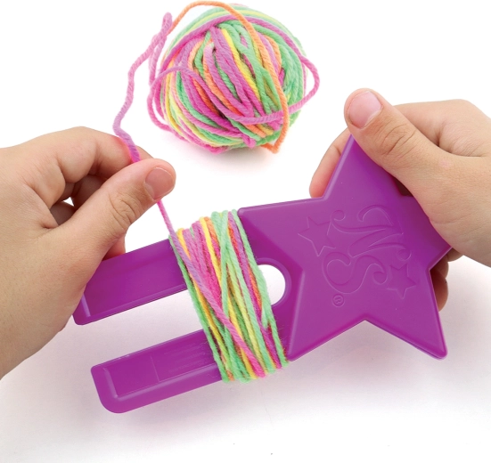 Díky ergonomické pomůcce a přehledným pokynům vytvoříte nadýchané bambulky rychle a bezpečně – stačí omotat, svázat a zastřihnout.
