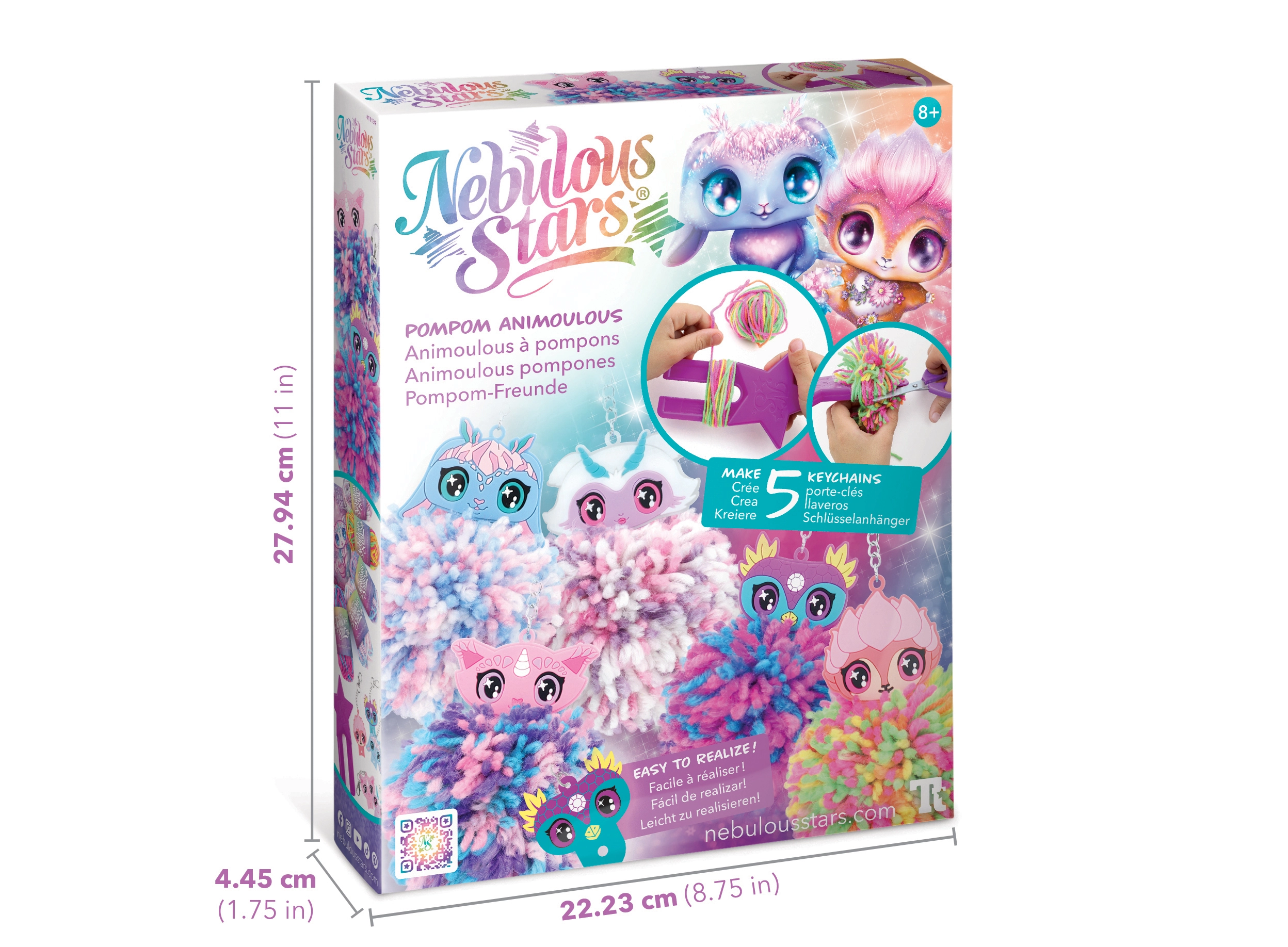 Vytvořte si roztomilé přívěsky z bambulek s kouzelným světem Nebulous Stars. Sada obsahuje vše potřebné: 5 držáků na bambulky s animoušem, barevné akrylové příze, nástroj na výrobu bambulek a ilustrované pokyny. Ideální pro rozvoj kreativity, jemné motoriky a pro zdobení klíčů, batohů či tašek.