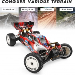 Užijte si adrenalinovou jízdu s RC buggy WLTOYS XKS 104001, které dosahuje až 45 km/h. Díky pohonu všech kol 4WD, 2,4GHz ovládání s dosahem až 100 m a olejovým tlumičům zvládne tento model písek, trávu i kamenitou cestu. Odolná hliníková konstrukce a kovové díly zajišťují dlouhou životnost a stabilní výkon.