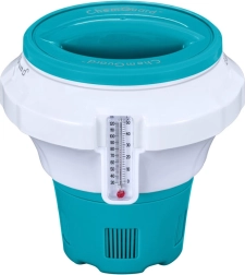 Udržujte vodu v bazénu a vířivce perfektně čistou a bezpečnou. Plovoucí dávkovač chemie BESTWAY CHEMGUARD s integrovaným teploměrem umožňuje přesné dávkování chloru či bromu, má nastavitelné uvolňování, dětskou pojistku a snadné čtení teploty ve °C i °F.