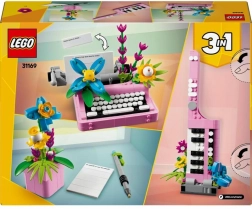 S touto stavebnicí LEGO Creator 3v1 mohou fanoušci květin, umění a designu vytvořit několik zajímavých modelů. Tento mini psací stroj je ozdoben čtyřmi barevnými květy a obsahuje pohyblivou klávesnici, válec a list papíru ze stavebnicových kostek.