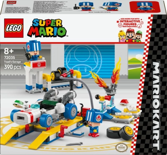 Vstupte do světa NINTENDO a připravte B Dasher na závod v setu LEGO Super Mario: Mario Kart – Toad a jeho garáž. Dvě figurky Blue Toad v pit crew kombinézách, funkční zvedák, výměnné standardní i modré pneumatiky, nářadí a doplňky jako klakson, motor a střela–mušle přinášejí spoustu herních možností. Přidejte interaktivní figurku LEGO Mario, Luigi nebo Peach (prodáváno samostatně) a užijte si digitální jízdu, driftování i létání s autentickými zvuky.