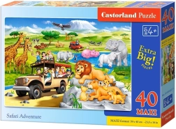 Objevte svět zvířat s podlahovým puzzle CASTORLAND Dobrodružství na safari. Díky 40 pevným MAXI dílkům je skládání přehledné a zábavné i pro mladší děti. Po složení vznikne krásný obrázek se zvířaty ze safari, který lze vystavit nebo znovu a znovu skládat.