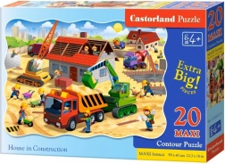 Barevné dětské puzzle s motivem domu na stavbě přináší 20 velkých maxi dílků, které jsou ideální pro malé ruce. Po složení vytvoří obrázek o rozměru 59 × 40 cm. Kvalitní zpracování a syté barvy podporují soustředění, trpělivost a rozvoj představivosti dětí.
