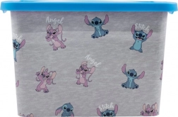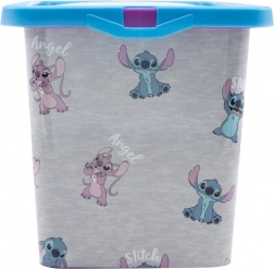 Úložný box je zdoben veselými motivy postaviček Stitch a Angel, což z něj činí zábavný doplněk do každého pokoje.