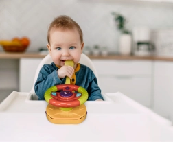 Rodiče ocení univerzální uchycení pomocí klipů a přezek na většinu autosedaček a kočárků a také odolné zpracování vhodné pro každodenní hraní. Hračka podporuje rozvoj jemné motoriky, koordinace oko–ruka a smyslového vnímání.