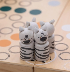Dopřejte dětem kouzlo klasiky v moderním dřevěném provedení. Člověče, nezlob se! Safari přináší roztomilé zvířecí figurky, jasné barvy a hladce zpracovaný herní plán z kvalitního dřeva. Hra je intuitivní, napínavá a podporuje společné chvíle celé rodiny.