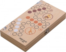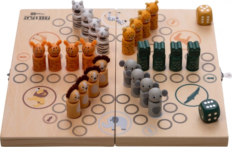 Užijte si klasickou rodinnou zábavu s dřevěnou verzí Člověče, nezlob se! Safari od FREE2PLAY. Barevné figurky ve tvaru zvířátek, pevný dřevěný herní plán a praktické kufříkové provedení zaručí bezpečnou, poutavou a cestovní hru pro děti i dospělé. Hra rozvíjí představivost a koordinaci oko–ruka a díky jednoduchým pravidlům je ideální již od 3 let.