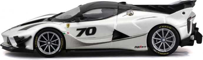 Výrazné aero prvky, číslo 70 a kontrastní bílo‑černé lakování věrně kopírují okruhový speciál FXX-K EVO.